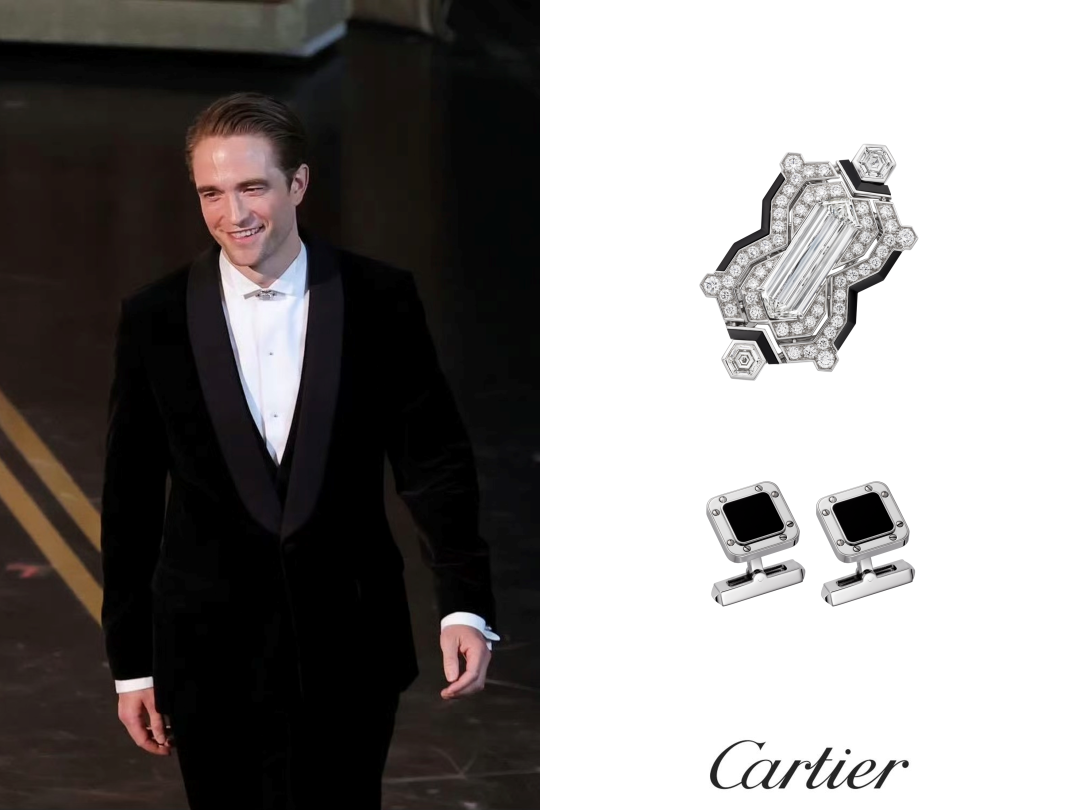 算作受奖嘉宾的罗伯特·帕丁森,也用一对卡地亚袖扣和领扣搭配,精良进度不输女明星。