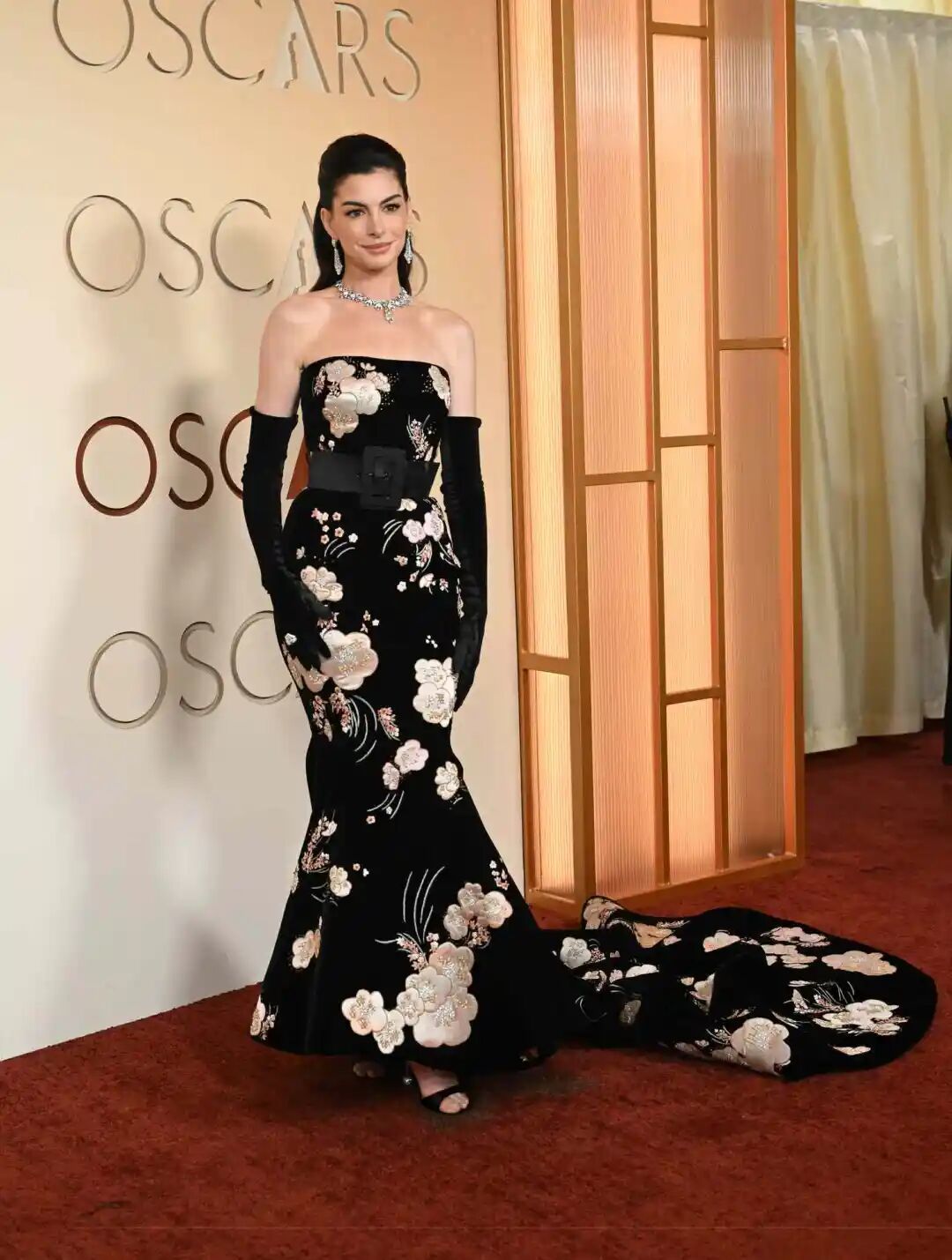 与此同期,范主也念念把本届珠宝奥斯卡的“最好女配”,颁给辅导宝格丽的安妮·海瑟薇。诚然安妮本年莫得提名,而是算作受奖嘉宾登台,却足以令东谈主印象深入~ 她的红毯Look格外广泛。一袭Valentino高定花草长裙,搭配一对超长的玄色手套,分外典雅,颇有上世纪60年代的接济名媛风,与妆发圆善契合。