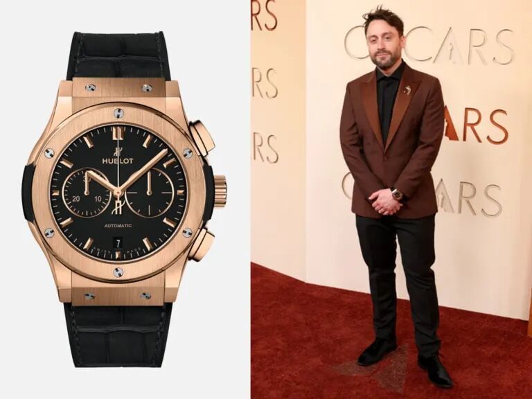 曾出演《袭取之战》的Kieran Culkin辅导宇舶Big Bang手表。King Gold特有的质感把Paul Smith巧克力棕西装衬得极具攻击性,霸总范儿十足。