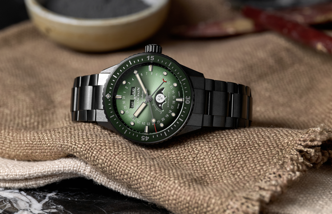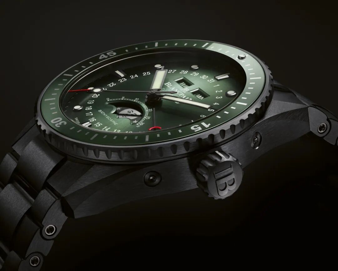 “极光绿”表盘更是一眼入魂,太阳辐射纹饰在光影下宛如风暴中快慰心的深海,辨识度拉满。 它里面搭载了6654.P机芯,配备防磁硅游丝,既有潜水表的硬核防水与接济硬朗的深潜器设想,又领有宝珀最经典的全历月相功能——那张记号性的“月亮好意思东谈主脸”,柔中带刚,完全是红毯上最有故事的一块表。