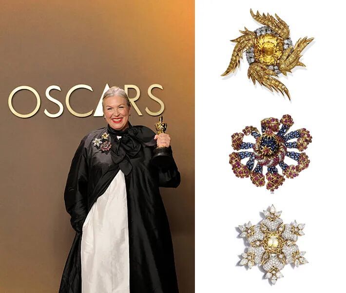 值得一提的是,凭借该片斩获最好服装设想大奖的凯特·霍利登台领奖时,相似辅导了三枚Tiffany古董胸针,它们均来自蒂芙尼古董贵重库让·史隆伯杰的作品——奖杯和胸针出自合并个夜晚。极致的好意思,经得住时期试验~