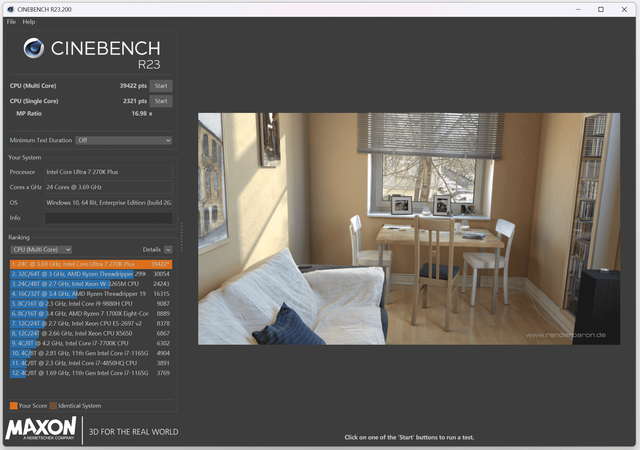 CINEBENCH R23测试:单核性能得分2321,豪门国际官网娱乐网多核性能得分39422