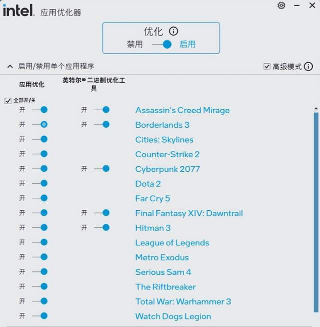 诚然,也为了进一步测试英特尔二进制优化器用关于游戏的影响,我有益对2个优化过的游戏进行了单独测试,对比结束如下: