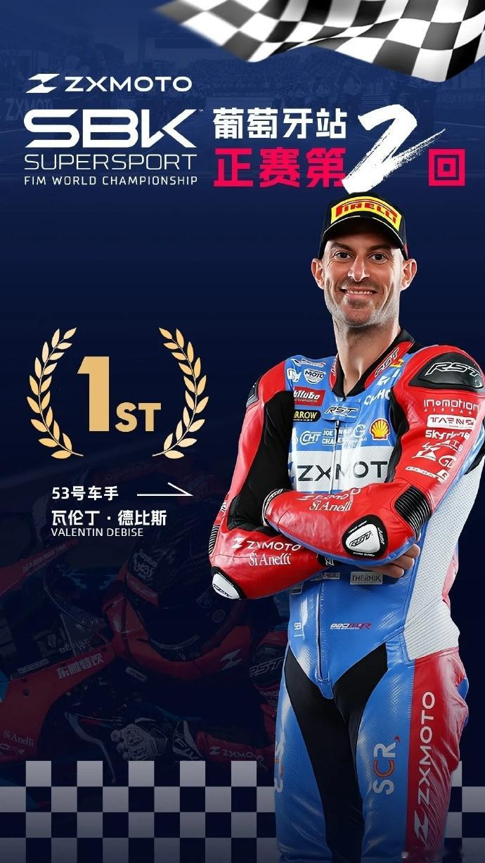 直播吧03月30日讯宇宙超等摩托车锦标赛(WSBK)葡萄牙站比赛在波尔蒂芒赛说念演出,中国张雪机车队第二回合再夺冠,扫尾一周双冠! 此前的首回合比赛中,张雪机车队的车手瓦伦丁·德比斯以跨越第二名近4秒的上风夺冠,成为首个在WSBK顶级赛事中夺冠的中国摩托车制造商,摧折了杜卡迪、雅马哈、川崎等国外大牌长达数十年的把持。 昨日进行的次回合比赛中,瓦伦丁·德比斯驾驶张雪机车820RR-RS赛车再次夺冠,豪门国际夺得葡萄牙站的双冠!