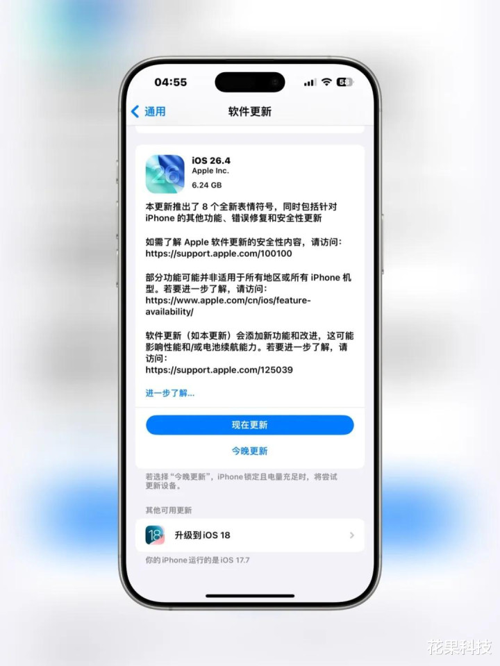 旧版块的 iOS 存在严重的系统谬误,用户一朝点击了坏心麇集八成侦察了被入侵的网站,可能会让数据濒临被盗风险。 这是苹果萧疏地盛开双版块更新,策画便是念念让推断停留在 iOS 18 的用户在更新到 iOS 18.7.7 郑再版后也能擢升安全性,而不是一定要升级 iOS 26。 虽然也曾升级了 iOS 26 的拓荒是无法左迁到 iOS 18.7.7 郑再版的。