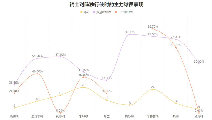 斯特鲁斯上赛季场均9.4分,两项掷中率分离为44.2%与38.6%,内容上从得分产量与效果上来看他并不算骑士队内最高效的弓手,除了中枢球员外,不管是亨特、勒韦尔还是杰罗姆的产量效果均胜于他,但从适配骑士进军体系与特定时分时他并不输其余队友: